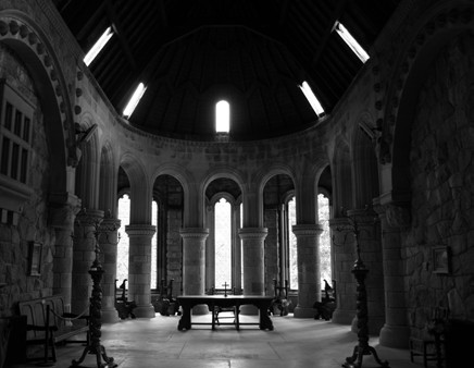 It was built by Walter Campbell, an eccentric architect, in response to his mother’s complaints that the drive from their mansion house on an island in Loch Awe to the nearest parish church at Dalmally was too much for her. He initially built a relatively simple church in 1888 but later extended it into a much grander and more elaborate structure which was not finished until 1930. Built out of local Cruachan granite boulders, which were rolled down from the hill above, it is a hotchpotch of different architectural styles, Saxon, Norman and Romanesque, complete with cloisters, a vast chancel and semi-circular apse and an armour-clad effigy of Robert the Bruce. Well worth a visit if you are en route to Oban and the inner isles.