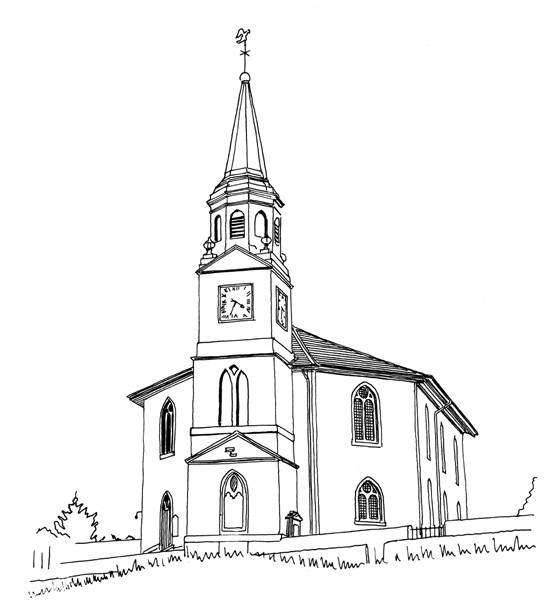 A church was provided from the start, built in 1788-90, one of a number of centrally-planned Scottish churches of the period. It was originally octagonal in plan, and was very similar to the parish church of Dreghorn, near Irvine in north Ayrshire.