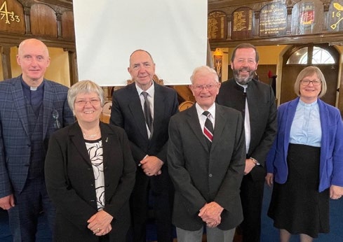 Pictured l-r: the Rev Alexander Ritchie, minister, Erskine United Free Church; Ena Hudson, Session Clerk, Kinghorn Parish Church; Bill Sweenie, Session Clerk, Burntisland Parish Church; Bill Cairns, Session Clerk, Erskine United Free Church; the Rev Jim Reid, minister, Kinghorn Parish Church; and the Rev Eileen Miller, locum minister, Burntisland Parish Church.